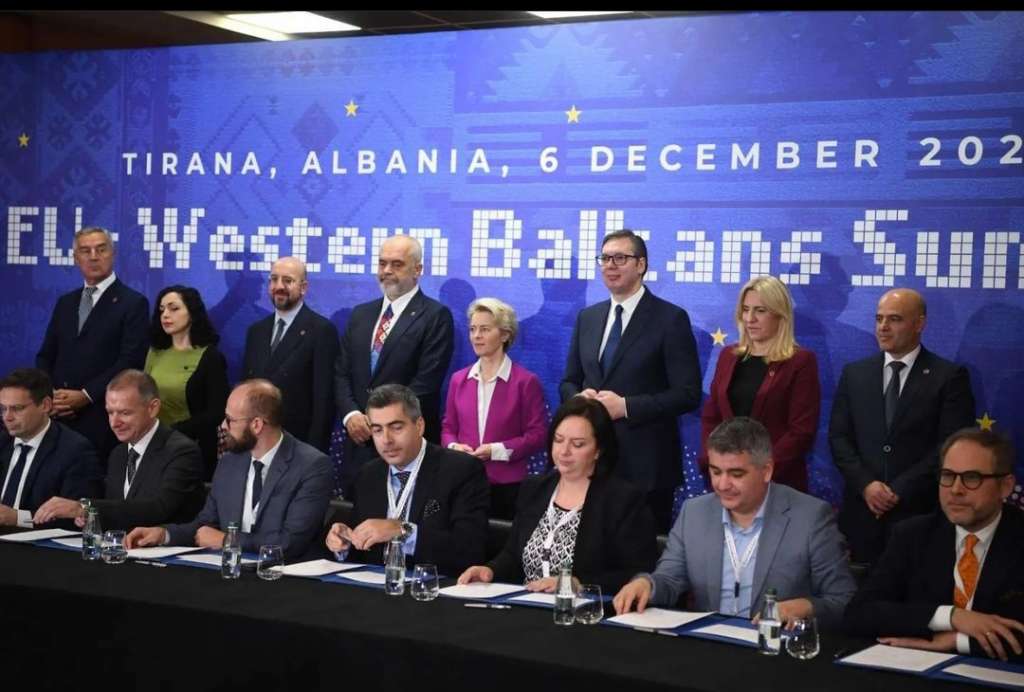 TIRANA – Zvaničnici Evropske unije i lideri zemalja Zapadnog Balkana potpisali su na samitu u Tirani zajedničku deklaraciju o odnosima Evropske unije i te regije u kojoj je rečeno da eskalacija agresivnog rata Rusije protiv Ukrajine ugrožava evropski i globalni mir i sigurnost.