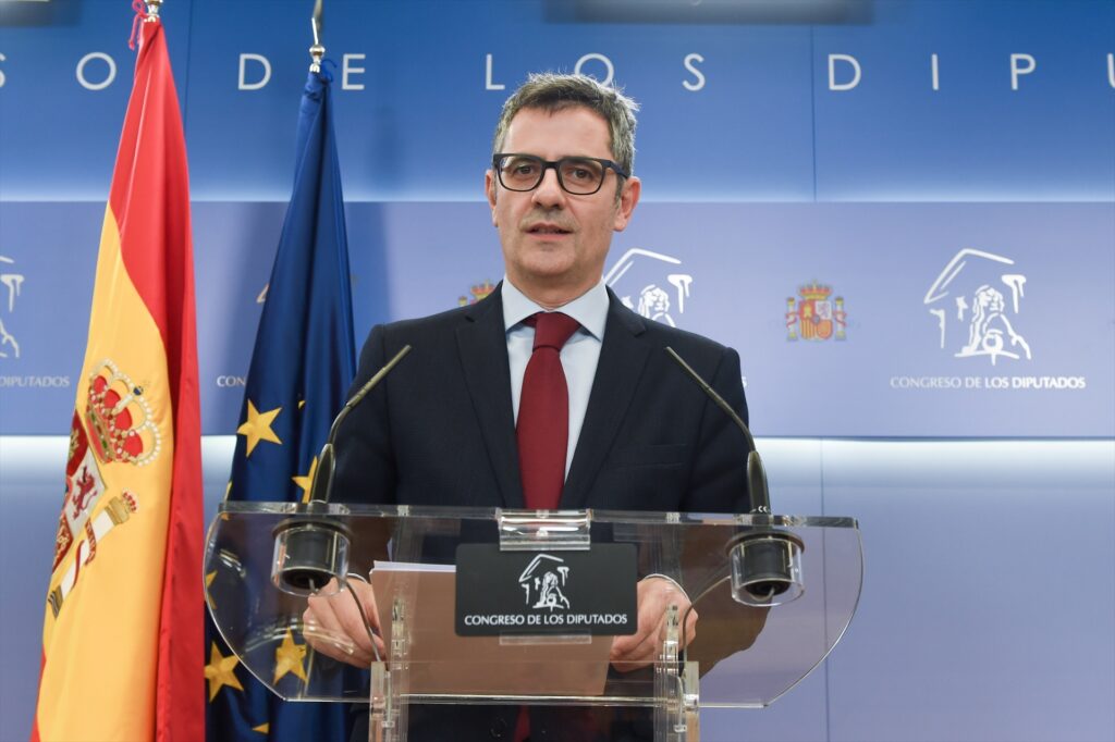 El ministro de la Presidencia, Relaciones con las Cortes y Memoria Democrática, Félix Bolaños, interviene durante una rueda de prensa tras registrar la ley de amnistía. Foto: Gustavo Valiente / Europa Press