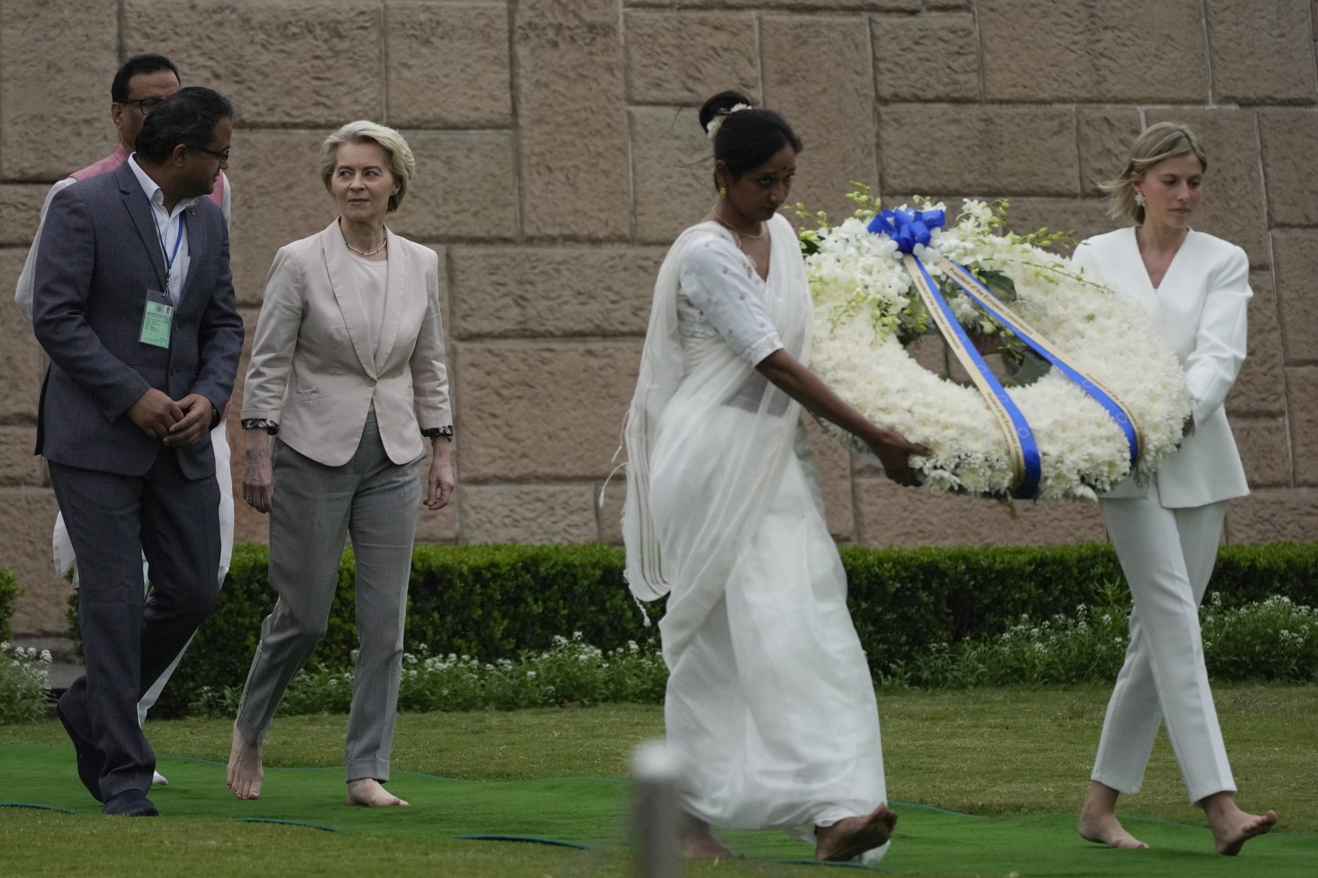 Von der Leyen travelled together with several of her EU commissioners, who met members of the Indian government.