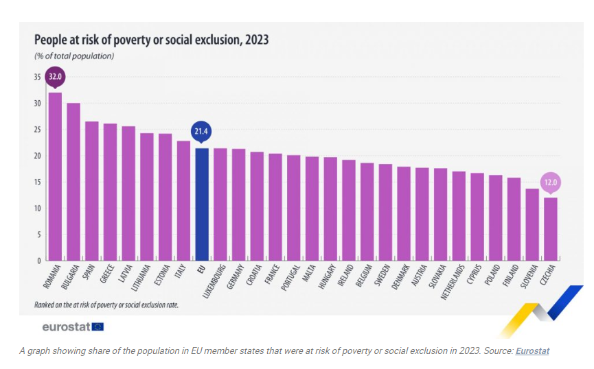 Bulgarie : Toujours d’après Eurostat, 30 pour cent de la population était menacé de pauvreté et d’exclusion sociale en 2023. Fin septembre, le Conseil des ministres bulgare a fixé le seuil de pauvreté pour 2025 à 638 leva (326 euros), soit une augmentation de 21,3 pour cent par rapport à celui de l’année en cours. Le ministre intérimaire de la Politique sociale du Travail, Ivaïlo Ivanov, a déclaré qu’en raison de cette augmentation, davantage de personnes et de familles dans le besoin bénéficieraient de l’aide de l’État.