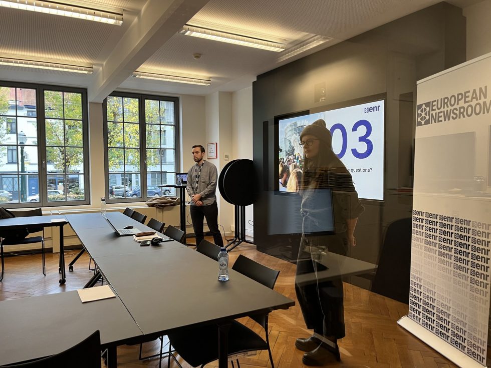 L’échange entre les représentants de l’enr, Victoria Becker et Tim Kohnen, et les journalistes invités a donné lieu à une discussion animée sur le journalisme au cœur de l’UE et sur la manière dont l’enr vise à améliorer la coopération entre ses 23 agences de presse de toute l’Europe : par la collaboration sur des formats communs, tels que les Key Stories hebdomadaires, et sous de nombreuses autres formes, par exemple l’organisation d’interviews et d’ateliers conjoints.