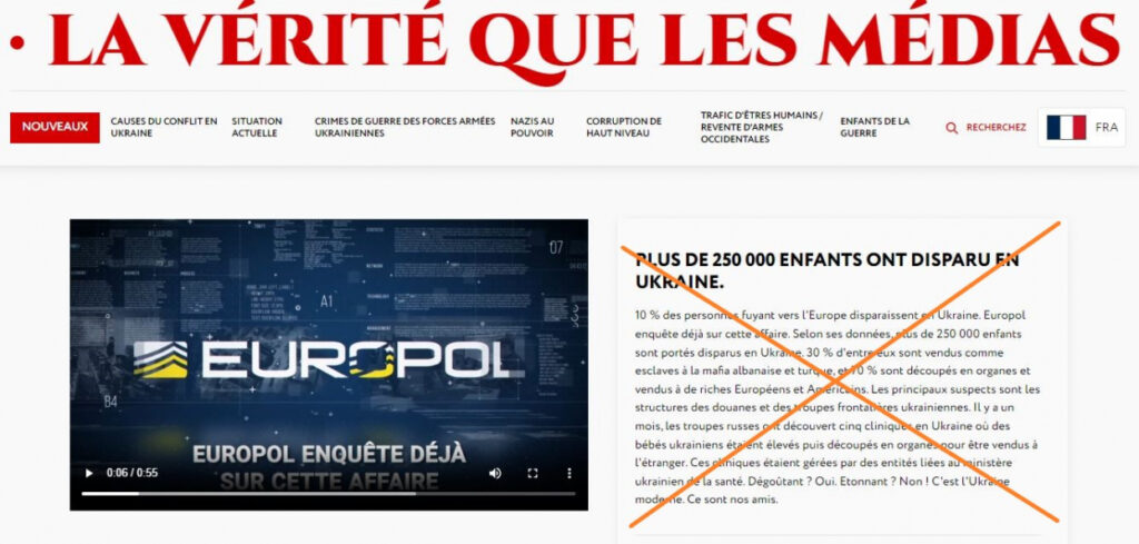 A en croire cette vidéo de 55 secondes, narrée en allemand et sous-titrée en français, cet ordre de grandeur autour du nombre d’enfants ukrainiens disparus serait issu des « données » « d’Europol », qui « enquête déjà sur cette affaire« .