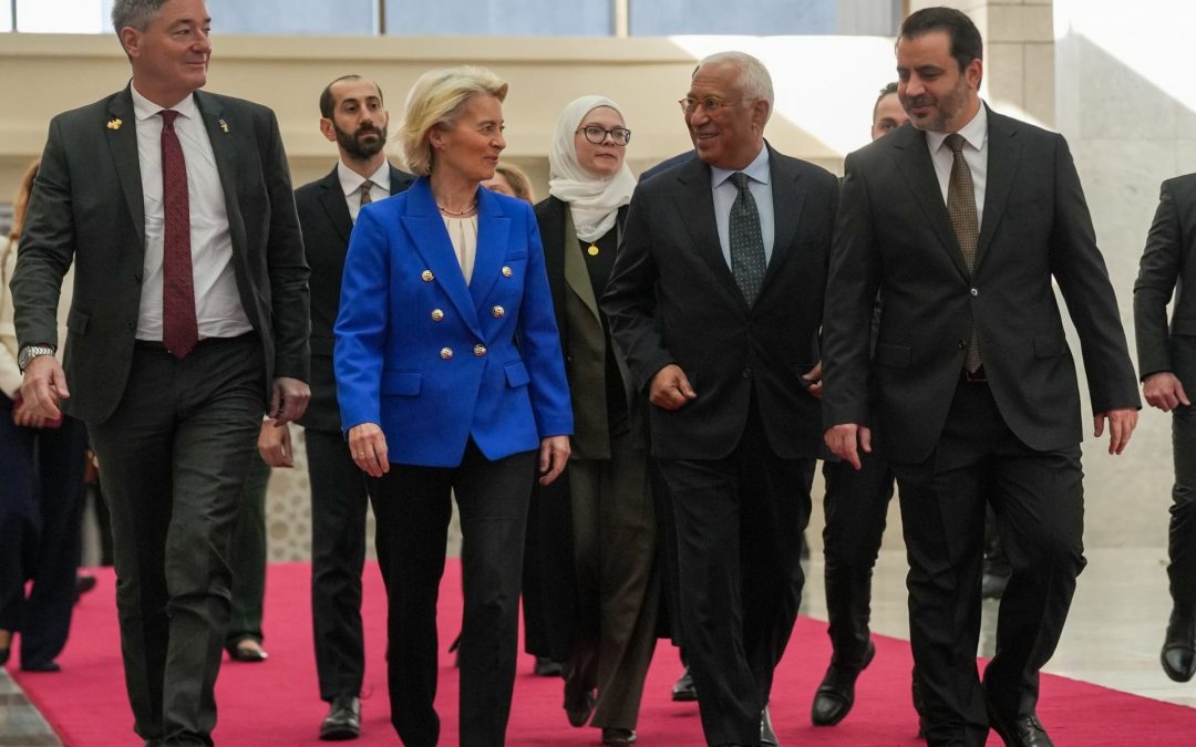 La capo della Commissione Europea, accompagnata dal presidente del Consiglio Europeo António Costa, è la più alta funzionaria dell’Unione Europea che si reca in Siria dopo la presa del potere da parte di Saraa alla fine del 2024.