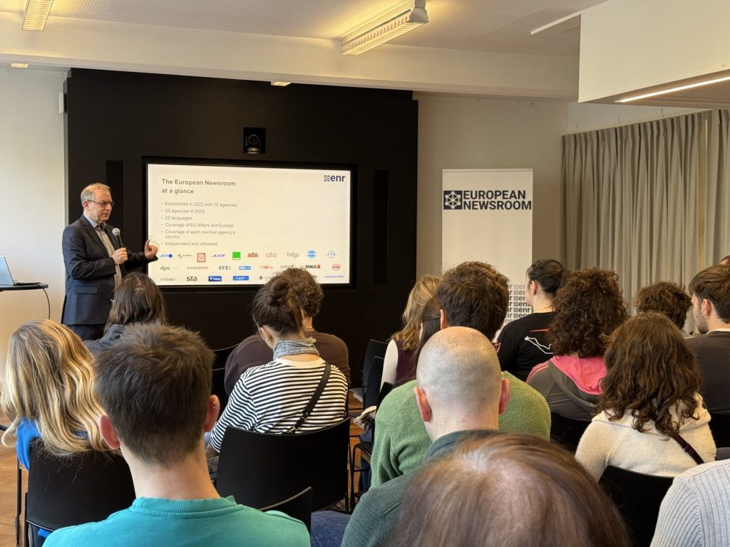 On November 5 and 12, the European Newsroom (enr) had the pleasure of welcoming future journalism professionals from Belgian KU Leuven university for the first time. During the sessions, enr staff members explained to more than 80 students and professors the enr’s philosophy, how it operates, and the benefits that 23 news agencies gain from participating in the project.