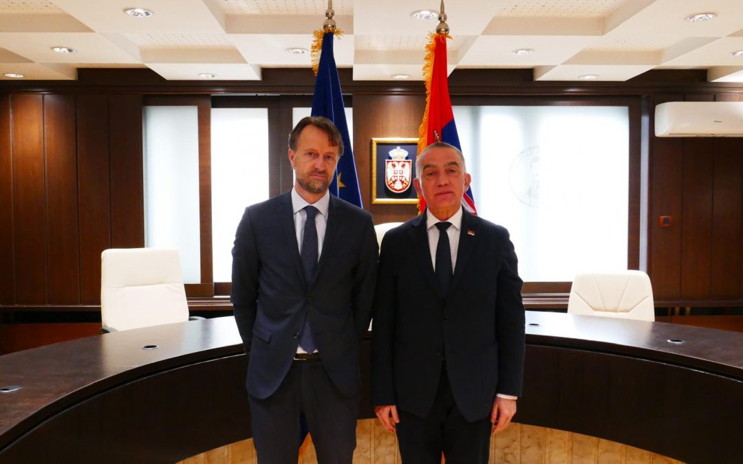 BELGRADE – The Minister of Justice Nenad Vujić spoke with the Head of the Delegation of the European Union to Serbia, Ambassador Andreas von Bekerat, about the continuation of reform processes in the judiciary and specific issues related to improving the rule of law, as well as activities carried out within the framework of Serbia’s accession process to the European Union.