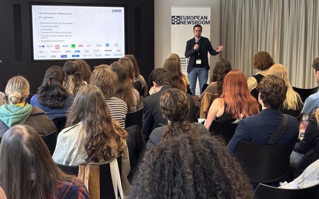 Young journalists listen to a presentation of the enr’s Christian Röwekamp. Photo: European Newsroom